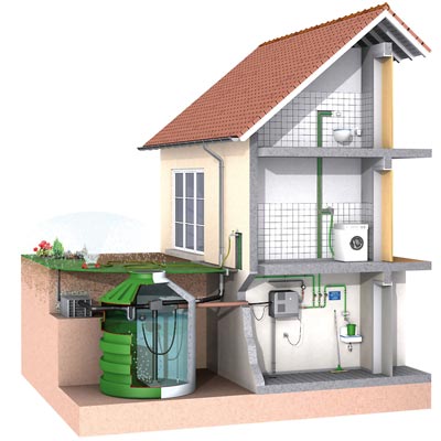 Ein guter Teil des Trinkwassers und der damit verbundenen Kosten könnte eingespart werden, wenn das Regenwasser, das gratis auf den Dachflächen landet, zumindest für den Betrieb der Waschmaschine und im Sommer auch für die Gartenbewässerung genutzt würde. Für die Waschmaschine ist Regenwasser sogar die beste Lösung, denn es ist ganz sicher kalkfrei. Die Zisternentechnologie hat sich in den letzten Jahren rasant entwickelt; moderne Tanks aus Kunststoff oder Beton werden heute als wartungsarme Komplettsysteme angeboten. Mangelnde Hygiene und Reinheit sind heute keine Themen mehr, da Filter das Regenwasser von Feststoffen säubern. Lichtundurchlässige Tanks verhindern zudem das Wachstum von Algen und anderen Mikroorganismen.