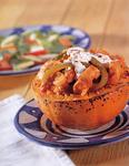 Gebackener Hokkaido mit Hähnchenfüllung
