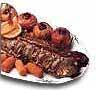 - Die eine Hälfte der Speckscheiben auf ein geeignetes Backofenbratblech auslegen. Das Fleisch darauf legen und mit den restlichen Speckscheiben zudecken. Die Zwiebeln schälen und vierteln. Die Wacholderbeeren zerdrücken und zusammen mit Pfeffer und Zwiebeln zum Rehrücken geben. Im Backofen 1 Stunde garen.