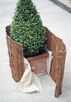 Nicht nur gegen den Frost, sondern auch gegen die Sonne müssen einige Pflanzen im Winter geschützt werden. Schilf- oder Bambusmatten verhindern das Vertrocknen der Pflanzen, denn bei Bodenfrost und Sonnenschein verdunstet das Blatt-Wasser, das Blatt würde vertrocknen und braun werden.