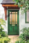 (Links)Nimmt man die Tür- und Fenster-Lasur in Tanne, bekommt der Eingang den charakeristischen Landhaus-Look.