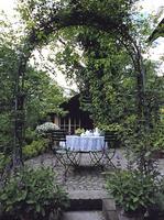 Mit Blüten und Blättern umrankte Bögen aus den verschiedensten Materialien schaffen reizvolle Durchblicke, und somit auch ein einheitliches Bild, von einem Gartenteil in den anderen. Durch diese räumliche Anordnung wird der begrünte Bogen zum Bilderrahmen für ein dahinterliegendes Gartenbild.